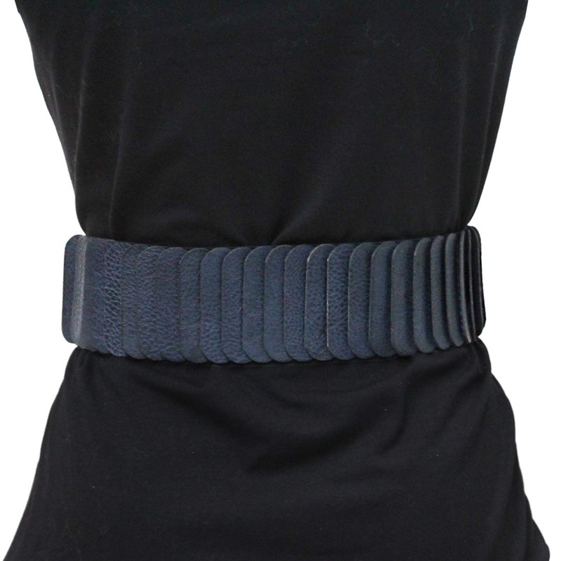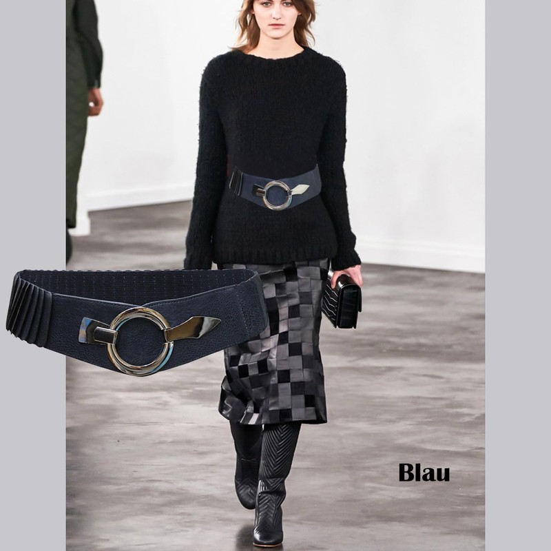 Glamexx24 Women's Elastic Waist Belt 6 cm Wide Waist Belt with Silver Ring, blue
