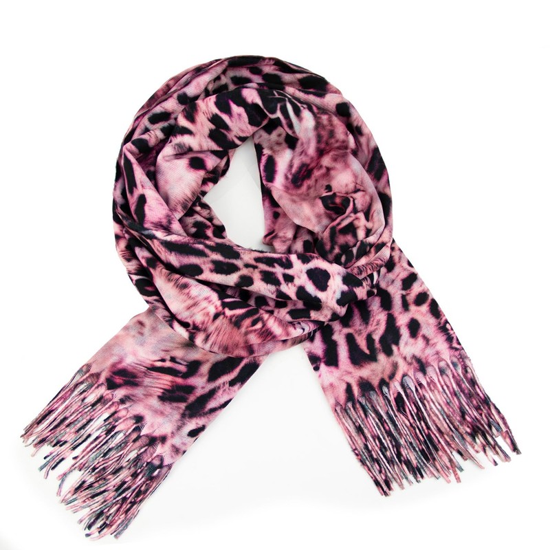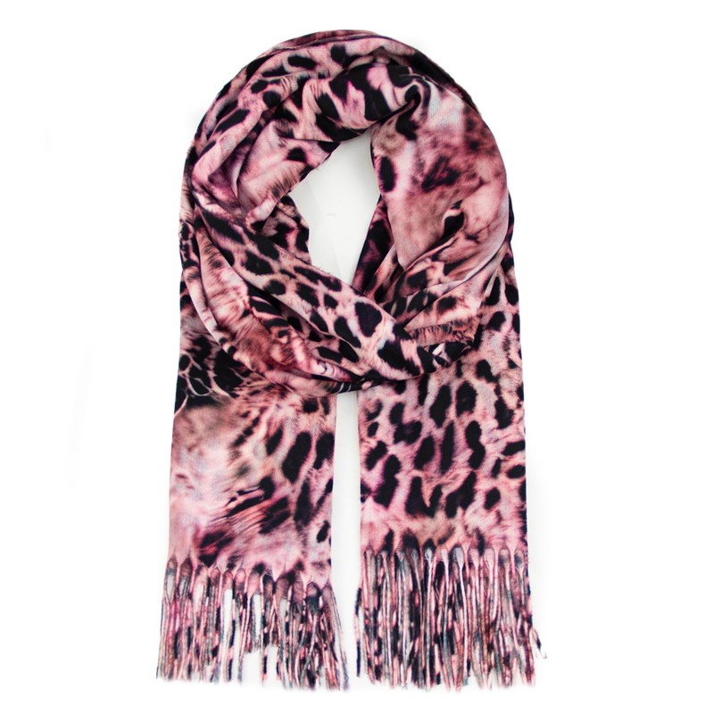 Glamexx24 Women's Scarf Winter Warm Long Scarf Cuddly Colour Leopard Pattern Fringe Poncho Scarf Oversized Blanket Scarf, light pink
