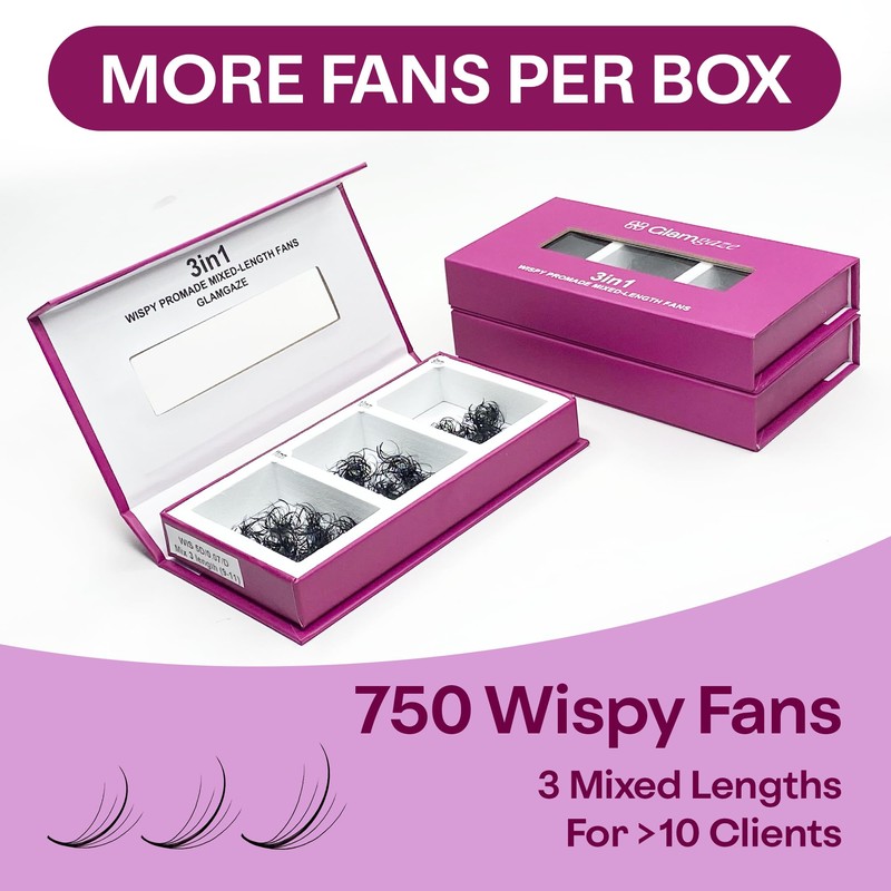 - ππππ-ππ π ππππππ: Each case includes 750 pre made fans lash extensions with 3 mixed lengths at only 3 cents per fan - giving lash techs professional-quality lash extension while maximizing profit. Glamgaze premade lash fan is a smart investment for high-end results at a cost-effective price.
