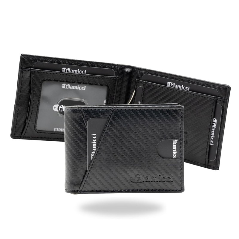 Glamicci Money Clip Wallet for Men | Slim Wallet for Men & RFID Blocking Leather Card Holder | Minimalist Wallet for Men (RGTW1) (CarbonFibre Black)