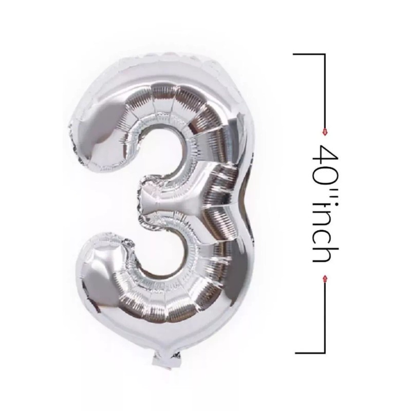 Glamixx 40" NUMBER (3) BALLOONS - Self Inflated Air/Helium - Foil Balloons - SILVER