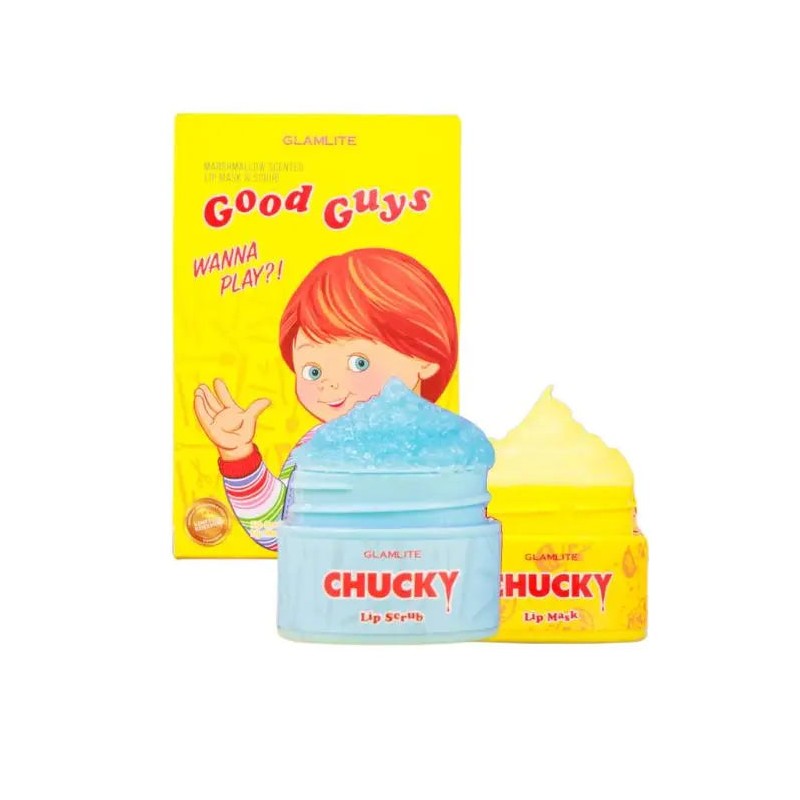 The Glamlite x Chucky Good Guys Lip Care Duo is the ultimate lip care combo that keeps your lips smooth and hydrated until the end. The Good Guys “Wanna Play?!” Lip Care Duo is infused with nourishing jojoba oil and shea butter, leaving lips dangerously soft and deeply hydrated. Inspired by the iconic Good Guys Cereal from the cult classic Child’s Play, this duo comes in a delicious marshmallow scent.