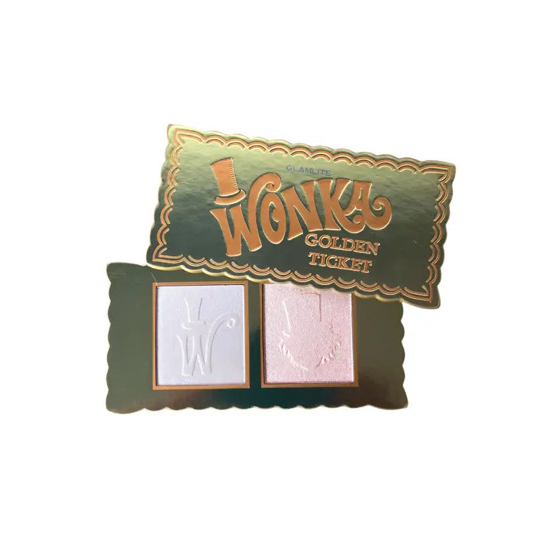 The Glamlite X Wonka Golden Ticket Highlighter is your ultimate ticket to radiant glam! Inspired by the iconic golden ticket, this stunning highlighter duo features two enchanting shades that make your skin glow like pure gold. Whether you want a subtle glow or an intense strobelight effect, these highlighters will make your skin shine like never before!