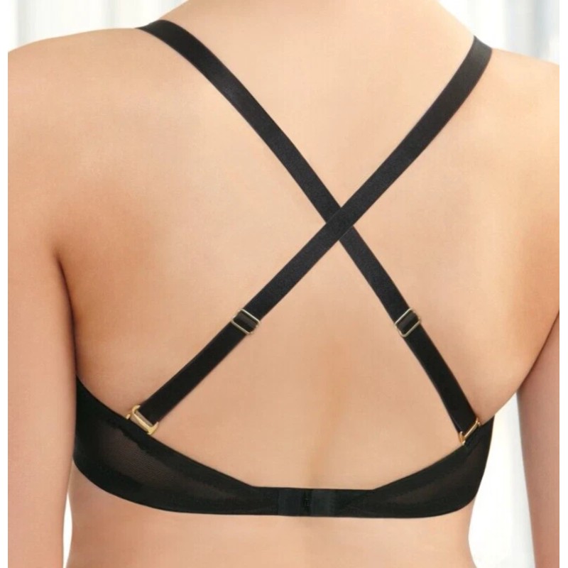 Band-free underwire. Adjustable straps allow three different wear options. Delicate lace in upper cups with accent color. Ultra feminine and sexy with delicate details.
