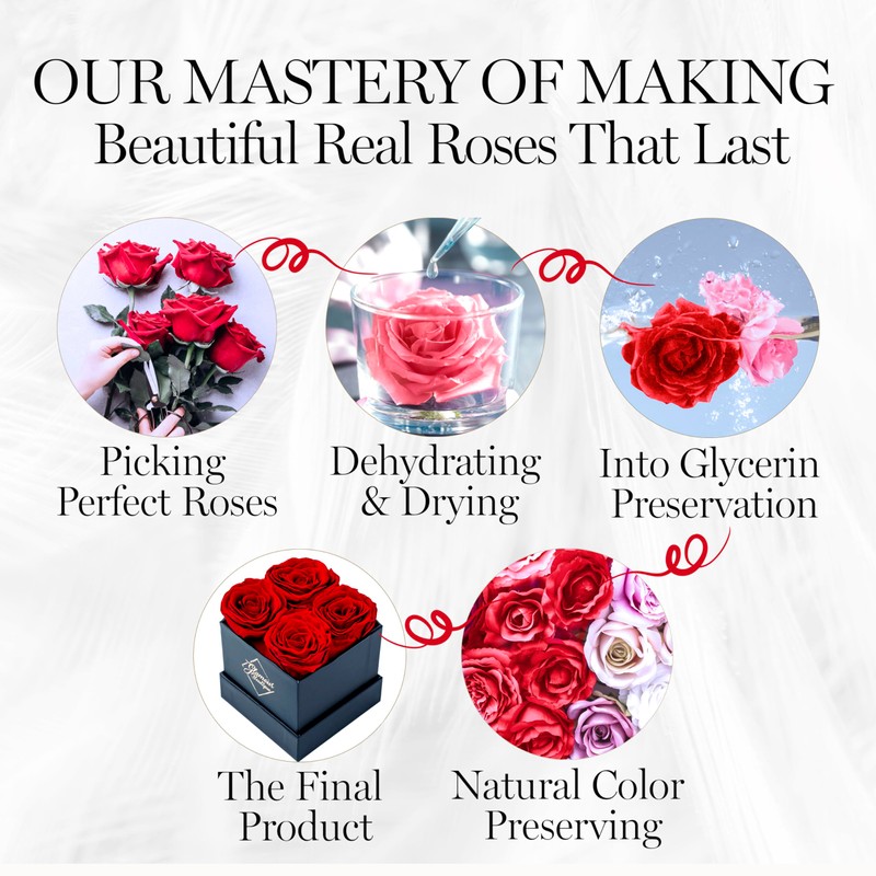 - Premium-Quality Preserved Rose: The box comes with 4 flowers, each one is made from a real rose with intricate realistic details. It's also manually assembled and can last for 1-3 years.