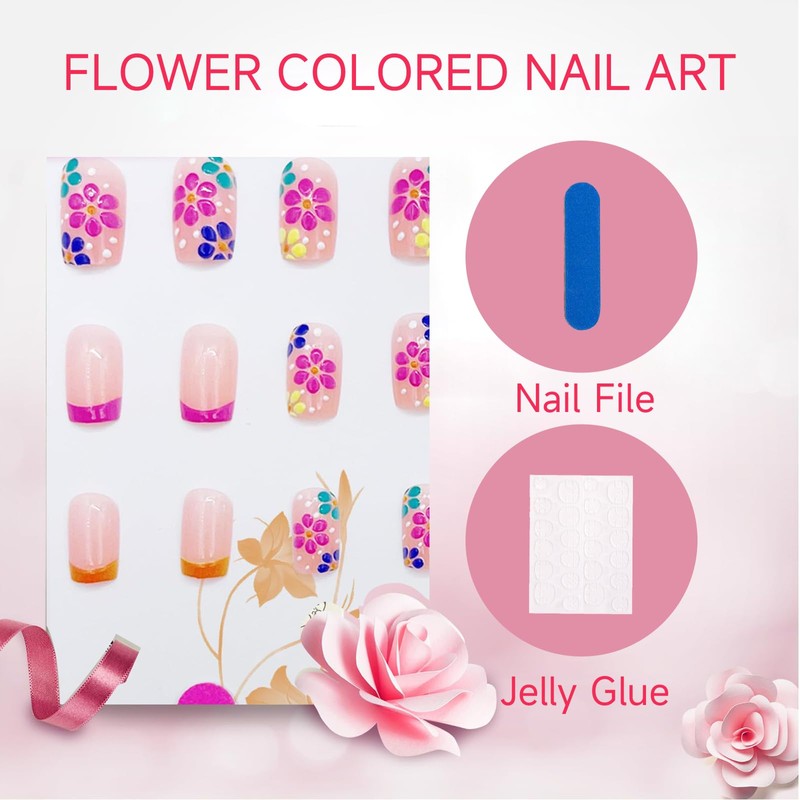 - Long durability: square press nails. Wear them for weeks or just a few days - you decide! You can use the included jelly stickers. However, if you want the flower artificial nails to last longer, you can use liquid nail paste to achieve a shelf life of 1 week.