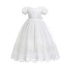 - Size & Color: Suit for 0-26 Months. Off White baby lace dress long christening gown. Newborn / Infant / Toddler / baby baptism blessing dress features cap-sleeves.