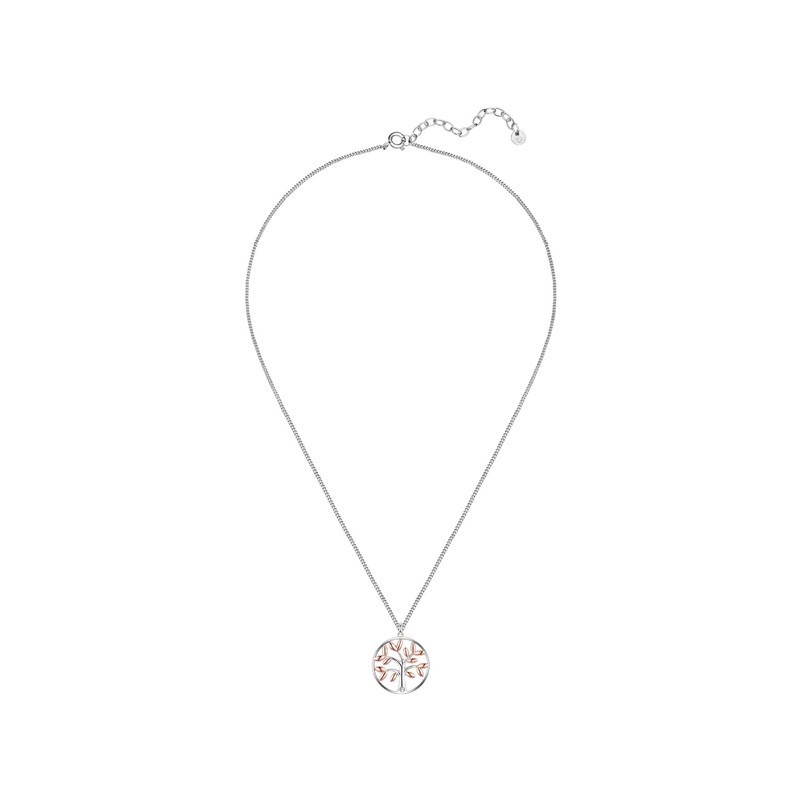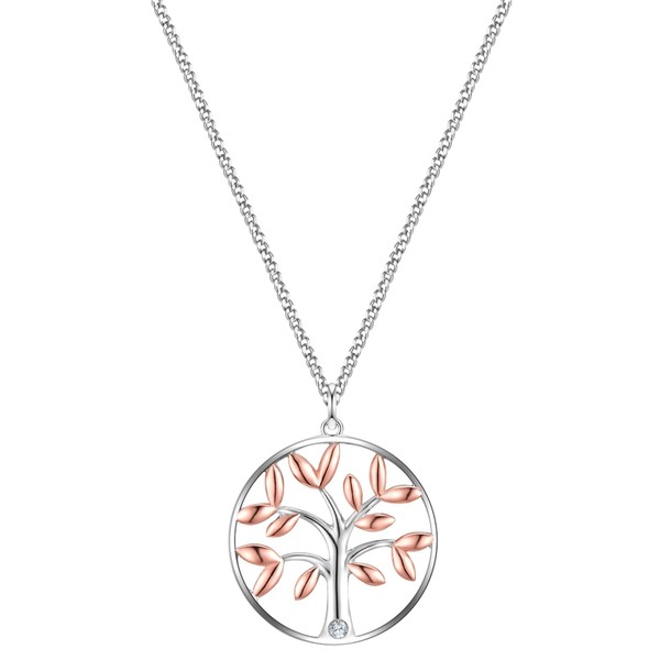 Glanzstücke München Women's Necklace 925 Sterling Silver Rhodium-Plated / Rose Gold-Plated with Lab Grown Diamond 0.005 Carat Tree of Life Silver Necklace, Diamond