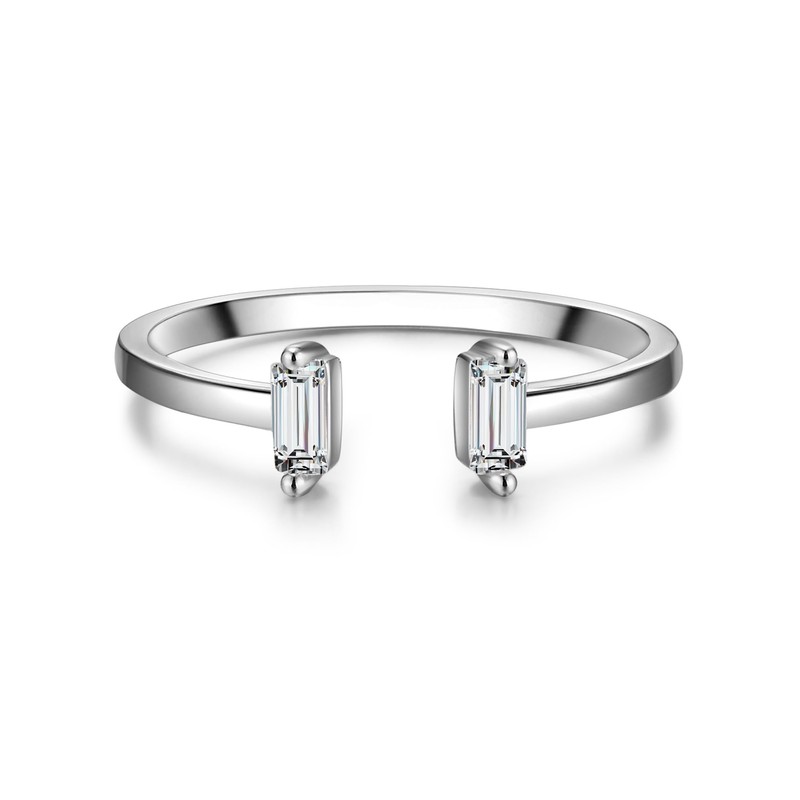 - 3D bar design: two bar-shaped crystals in prong setting make the 1.4 mm narrow open ring band an eye-catcher