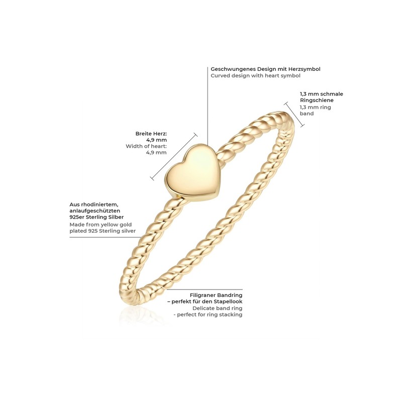 - High quality: the smooth surface of the heart symbol combines with the twisted ring band to create a feminine piece of jewellery made of yellow gold-plated sterling silver