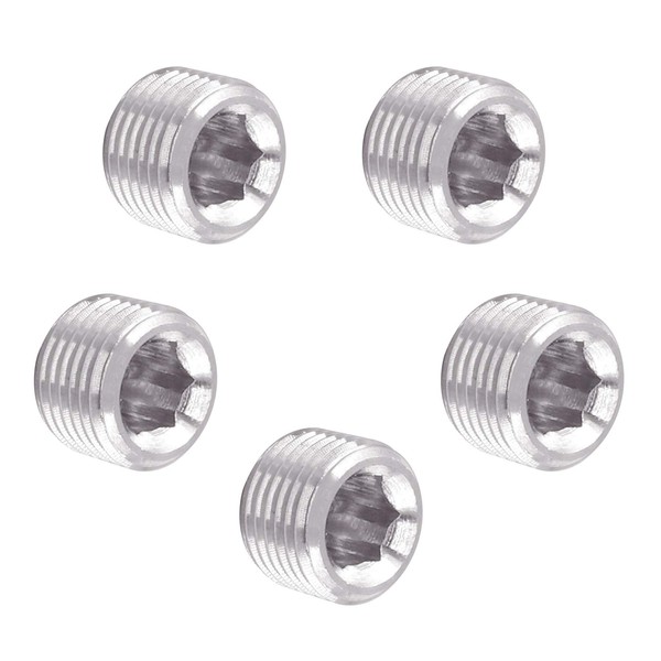 Glarks 5Pcs 304 Stainless Steel 1/8'' NPT Male Pipe Plug Fitting Assortment Set Internal Hex Thread Socket Pipe Plug Kit