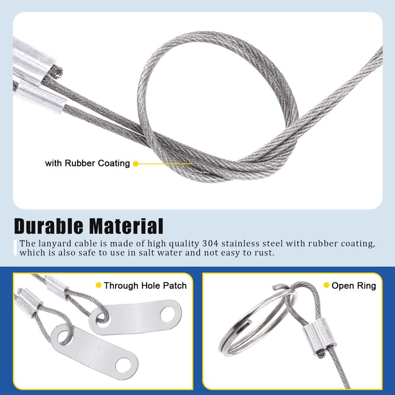 √ 304 stainless steel lanyard cable with rubber coating is also safe to use in harsh environment and ensure long service life.