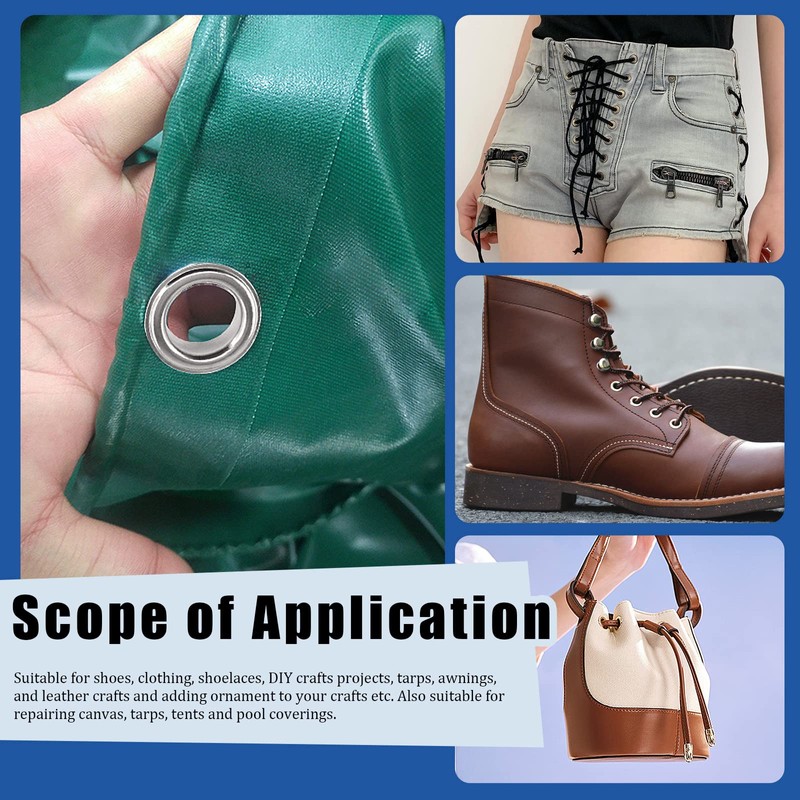 √ Grommet eyelets with washers are practical tools to repair canvas, tarpaulin, tents, sheds, curtains and other process projects.
