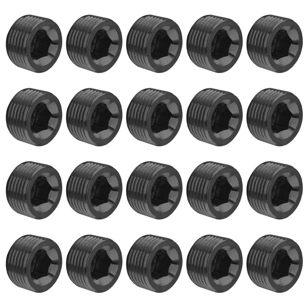 Glarks 20Pcs Carbon Steel 1/4'' NPT Male Pipe Plug Fitting Assortment Set Internal Hex Thread Socket Pipe Plug Kit