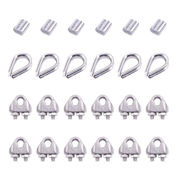 Glarks 24Pcs M2 Wire Rope Cable Clip Clamp with Cable Thimbles Combo and Aluminum Crimping Loop Sleeve Set for Wire Rope Cable Thimbles Rigging (5/64'' Wire Rope Clips Set)