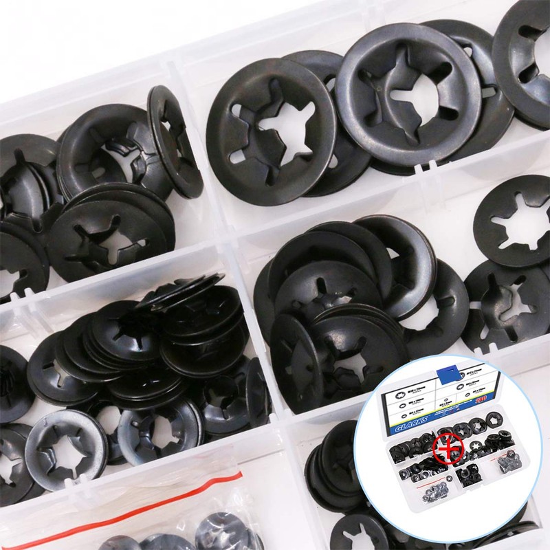 Glarks 280Pcs Internal Tooth Starlock Push On Locking Washers Speed Clips Fasteners Assortment Kit