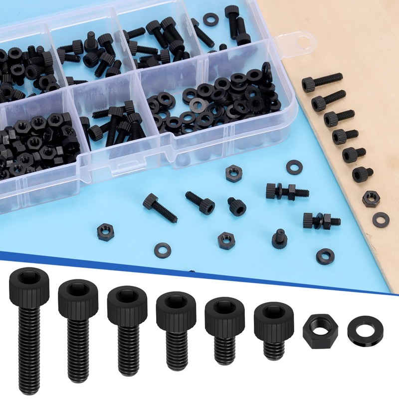 - ♛【Reliable Material】: All hexagon socket screws and nuts washers are made of nylon material. Without surface treatment, they have good toughness and corrosion resistance. The surface is smooth and burr-free, non-conductive. Light weight, good insulation properties. Good tensile strength for a wide range of environments. A versatile and reliable choice for a variety of industrial and commercial applications.