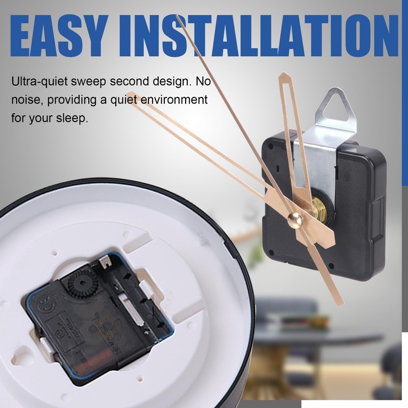 • ♛【High Quality Material】: The clock hands are made of high-quality aluminum, which is lightweight and resistant to corrosion. The clock movement is made of ABS material and metal, and the coil in the clock movement is made of thick brass, which can run at constant speed and the quality gears last a long time. The clock repair parts replacement to provide you with extreme accuracy and reliability, as well as sweeping motion without ticking, providing you with a quiet sleeping environment and calm mood.
