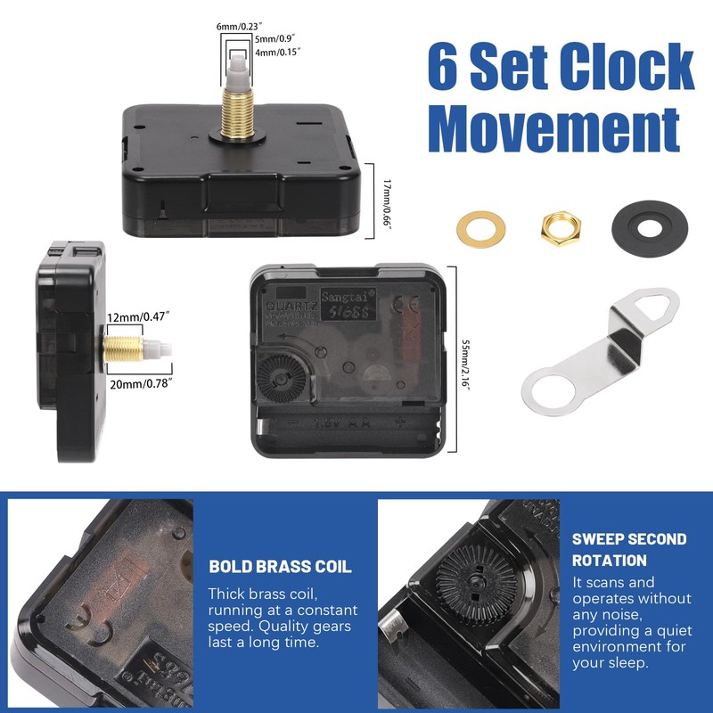 • ♛【Size Details】: The 6pcs clock movement total shaft lengths are 20mm/0.78in. The jumping seconds movement is suitable for clock panels in 12mm/0.47in thicknesses. The right size is easy for you to use and store.