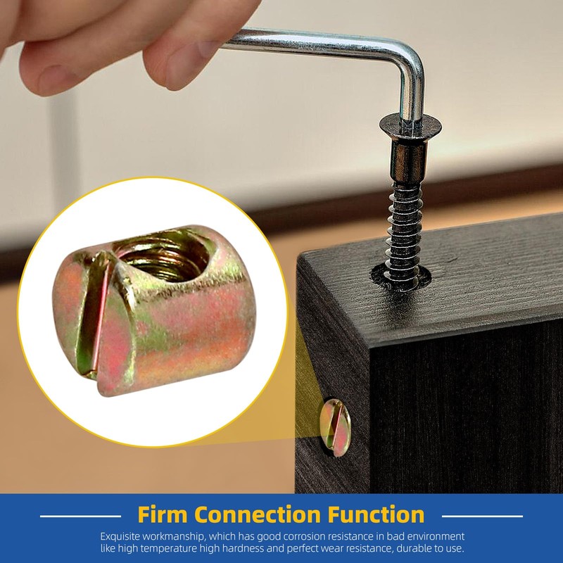 - ♛【Wide Application】: The barrel cross dowels slotted nut is suitable for the installation and connection of wooden furniture, such as bed frames, wardrobes, cabinets, chairs, tables, etc. You can also be used for other DIY wooden items, or to replace the damaged parts.
