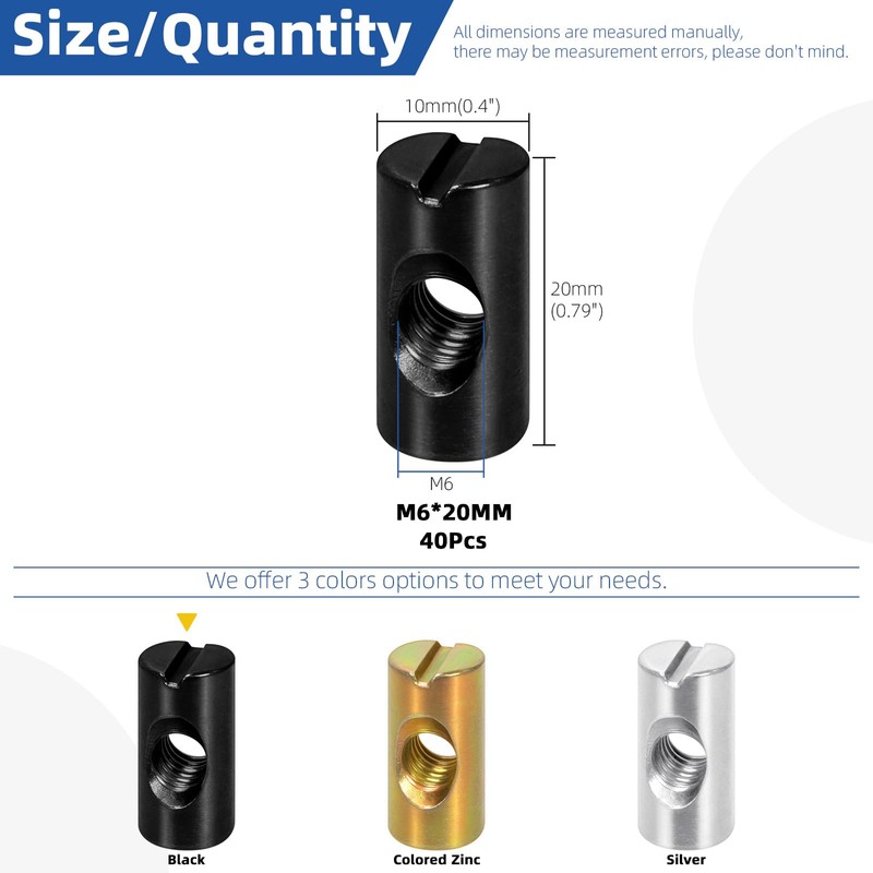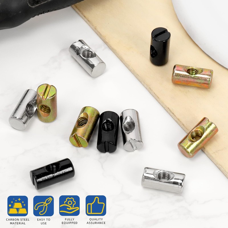 Glarks 50pcs M6 x 20 mm Black Barrel Nuts, Carbon Steel Cross Dowels Slotted Nuts, Slotted Drive Nuts, Horizontal Hole Nut for Hardware Replacement, Beds Cot and Chairs
