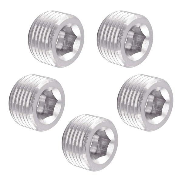 Glarks 5Pcs 304 Stainless Steel 3/8'' NPT Male Pipe Plug Fitting Assortment Set Internal Hex Thread Socket Pipe Plug Kit