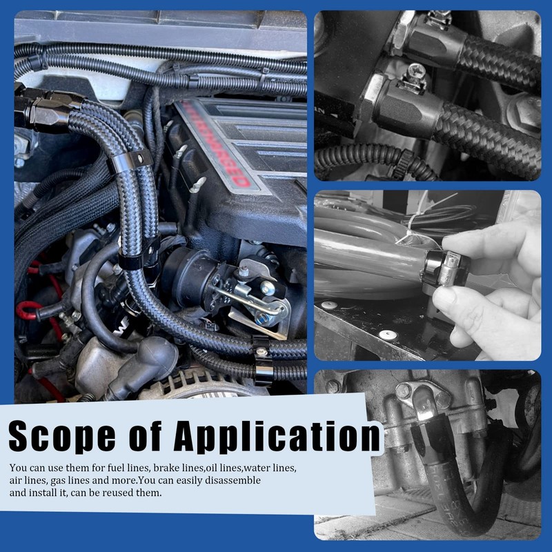 - ♕ 【Wide Application】: Our shop will provides 4AN, 6AN, 8AN, 10AN hose end finisher clamps and hose separator clamps for you to choose. With powerful compatibility and reusability, you can repeatedly use these hose end finishers and billet aluminum line separators for separating, isolating, and securing fuel lines, air lines, brake lines, water lines, oil lines, gas lines, etc.