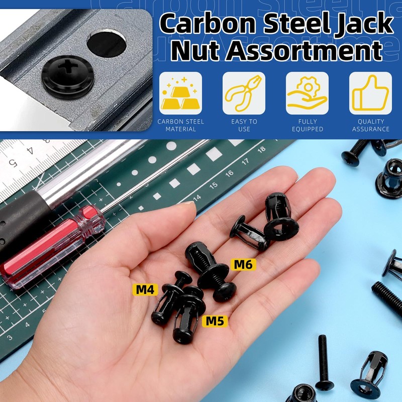 - ♛【Easy to use】: Our expansion nuts stretch well. Fixes firmly after expansion and does not fall off. Easy to use. Simply screw the right size flat head Phillips machine screw into the jack nut. Tighten the jack nut with a wrench. The jack nut expands and holds while you tighten the screw. Do not tighten too tight, otherwise the threads will come out.