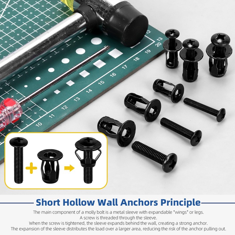 - ♛【Multiple Application】: Expansion nuts are suitable for hanging curtain rods, lights, picture frames, cabinets, wall panels, hangers, power switches, clocks, number plates and container labels. They are also suitable for use on a variety of substrates such as wall panels, concrete, wood, ceramic, cardboard and thin plastic or metal panels (iron, hollow core, aluminium frame).