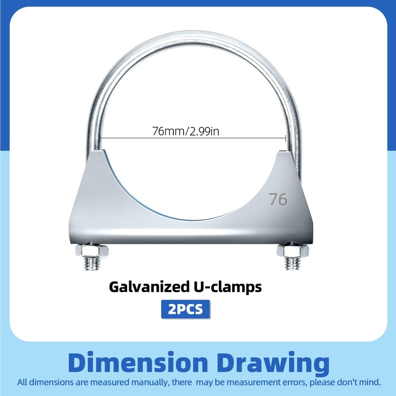 Glarks - Abrazadera de escape en U de 1.3 pulgadas, abrazaderas universales de silenciador de perno en U para entrada de tubo de escape, sellado de codo y tubería (3 pulgadas)