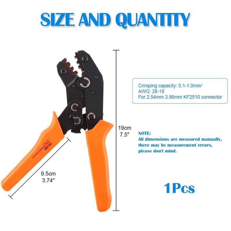- Crimping capacity: 0.1-1.0m㎡, AWG: 28-18, For 2.54mm 3.96mm KF2510 connector