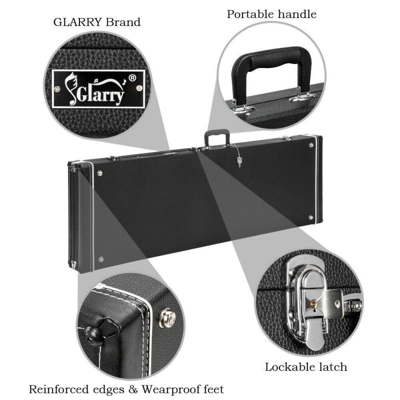 If you are an electric guitar lover, I think this Glarry High Grade Electric Guitar Square Hard Case Flat is a product you can't miss. It is made of high quality wood, leather, plush and hardware accessories material, durable and sturdy in use. It features good quality, high strength of the case and high quality leather, so you can use it for a long time. It has large interior storage compartment for accessories. And it is designed for electric guitars. You are worth it!