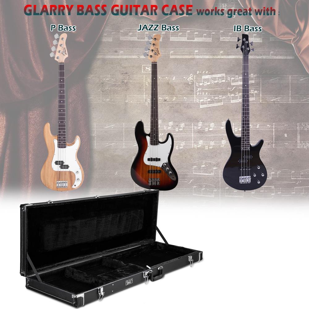 Glarry Cases Hard-Shell Wood Case for Electric Bass Guitars With Lockable Keys