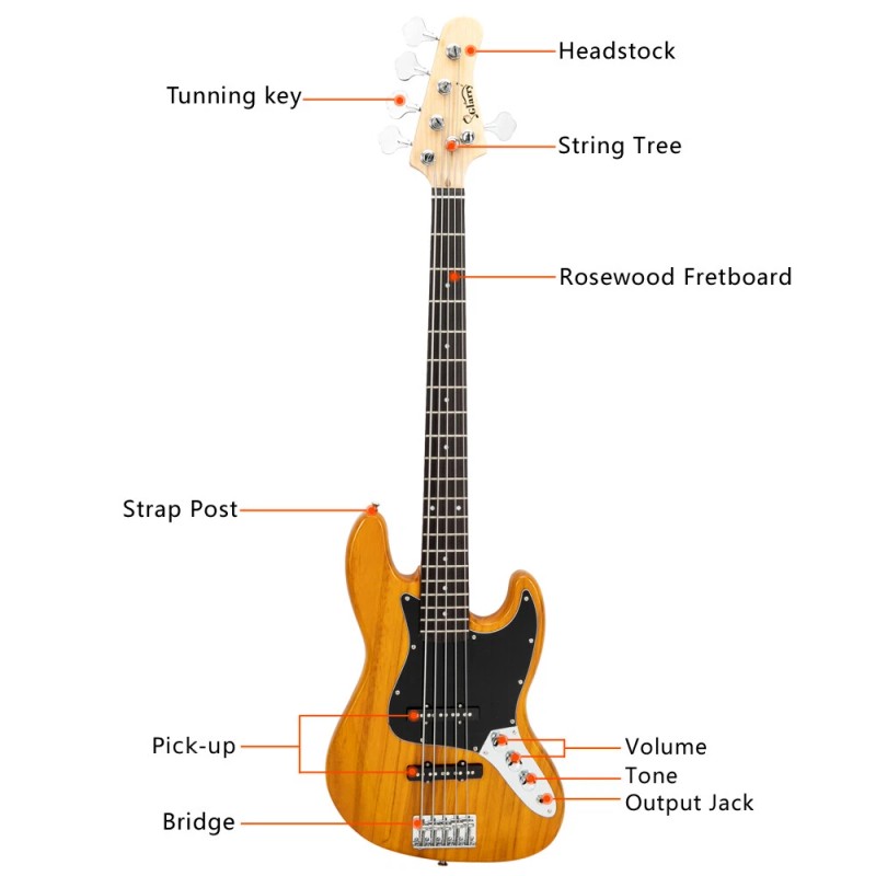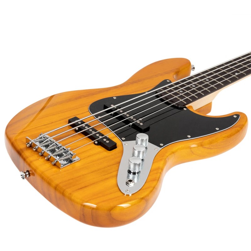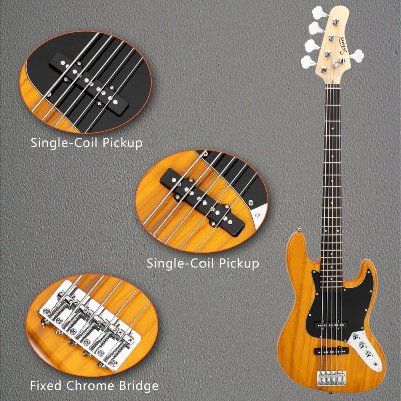 Glarry Gjazz Electric 5 Strings Bass Guitar Full Size Bag Strap Pick Connector