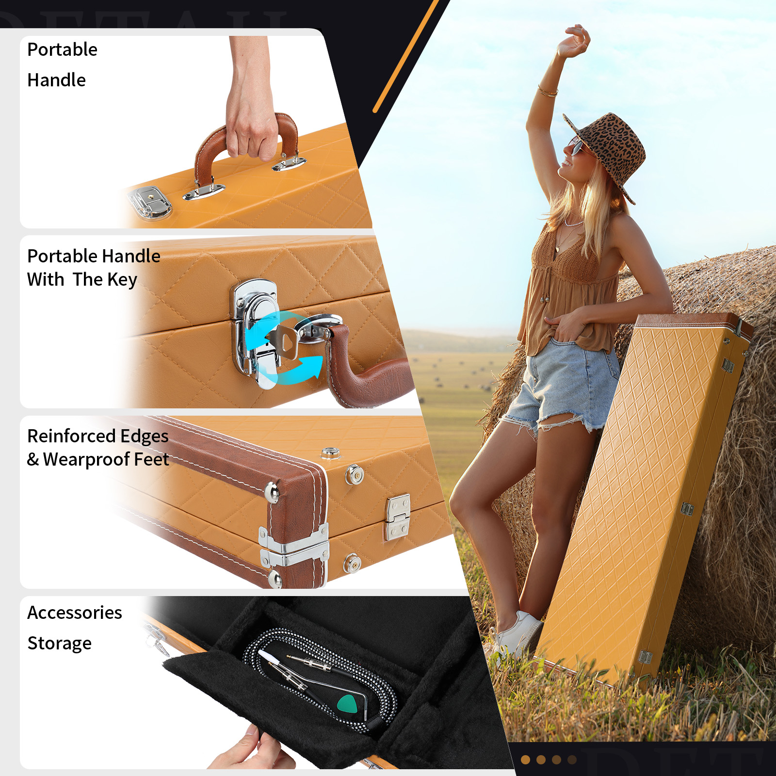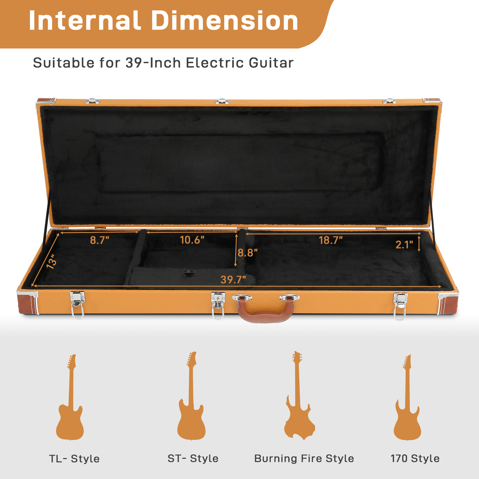 Ktaxon diamond pattern Electric Guitar Square Hard Case for GST GTL 170 SG and Burning fire Style Flat Yellow with Brown
