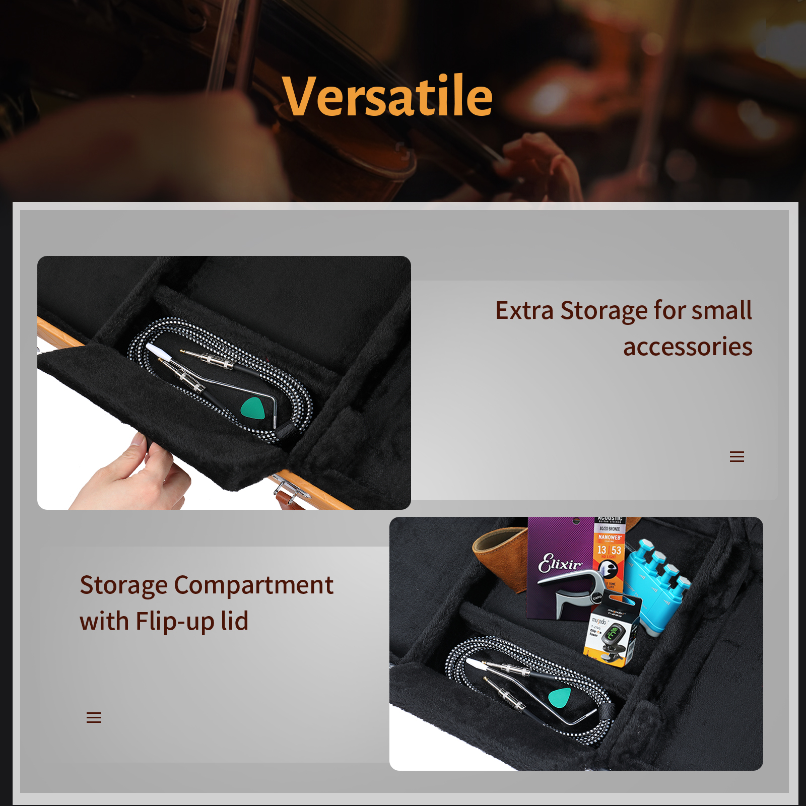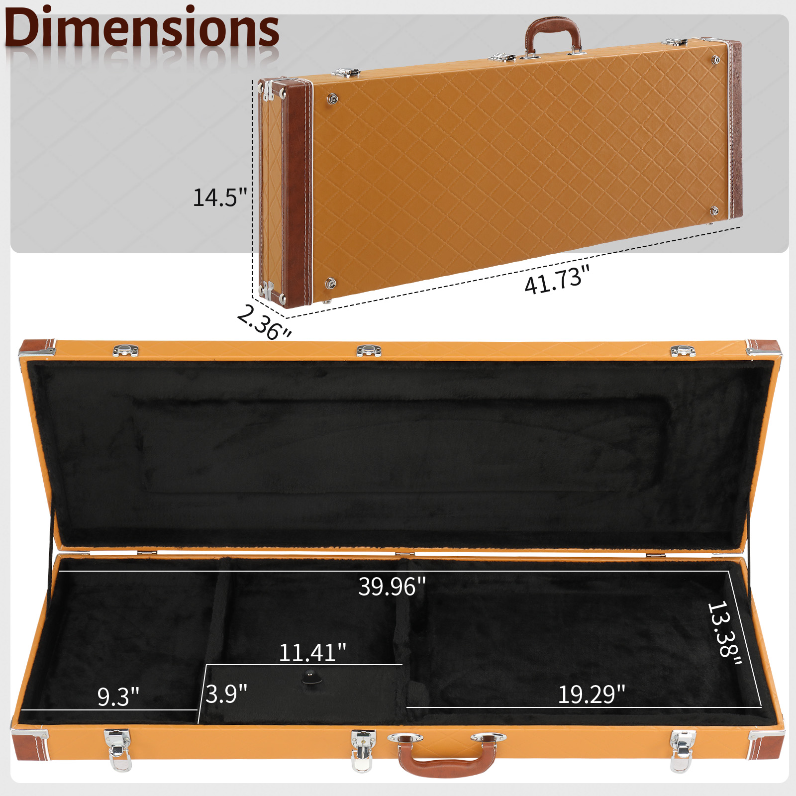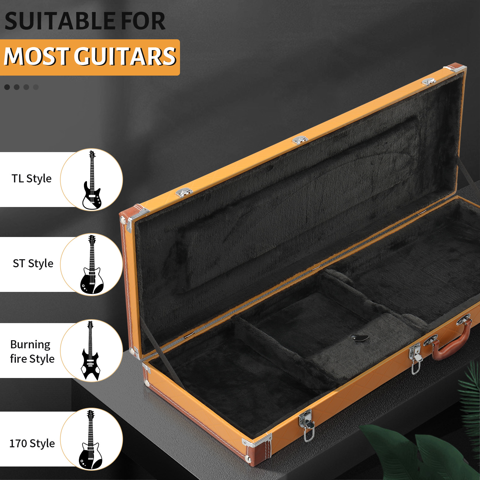 If you are an electric guitar lover, I think this diamond pattern Electric Guitar Square Hard Case is a product you can't miss. It is made of high quality wood, leather, plush and hardware accessories material, durable and sturdy in use. It features good quality, high strength of the case and high quality leather, so you can use it for a long time. It has large interior storage compartment for accessories. And it is designed for electric guitars. You are worth it!