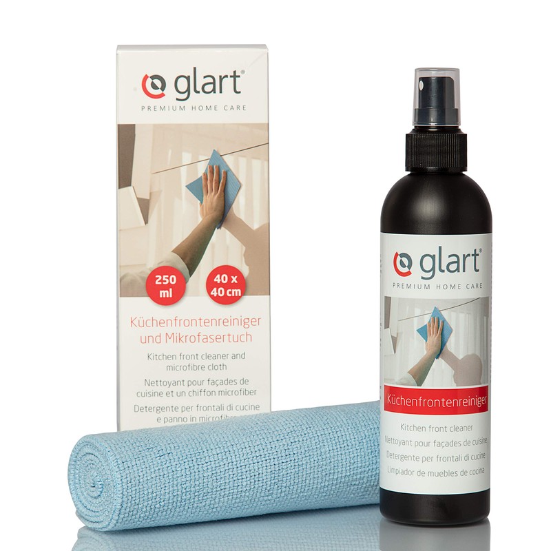 - WHAT'S INCLUDED: 1 x tried-and-tested kitchen cupboard door cleaner 250 ml plus a Glart Super microfibre cloth, 40 x 45 cm, Made in Germany, in a practical collapsible box, making it an ideal present