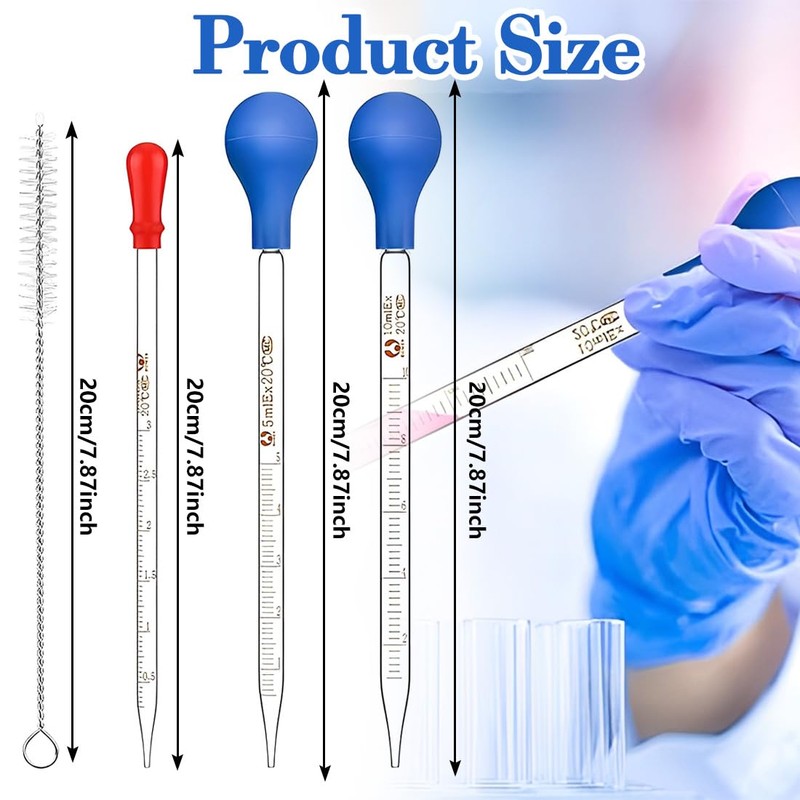 Glas Pipette Dropper 3ml 5ml 10ml Tropfpipette Flüssigkeiten Messpipette mit Gummi-pipettierball + Reinigungsbürste
