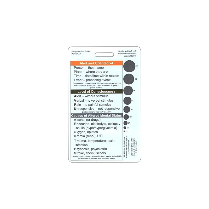 Glasgow Coma Scale (GCS) Vertical Reference Badge ID Card (1 Card)