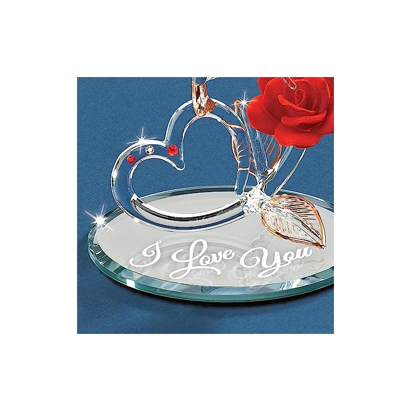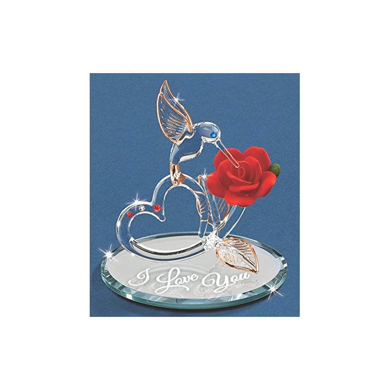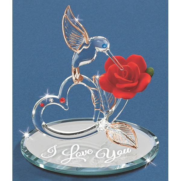 - Handcrafted figurine of a hummingbird with a heart and rose