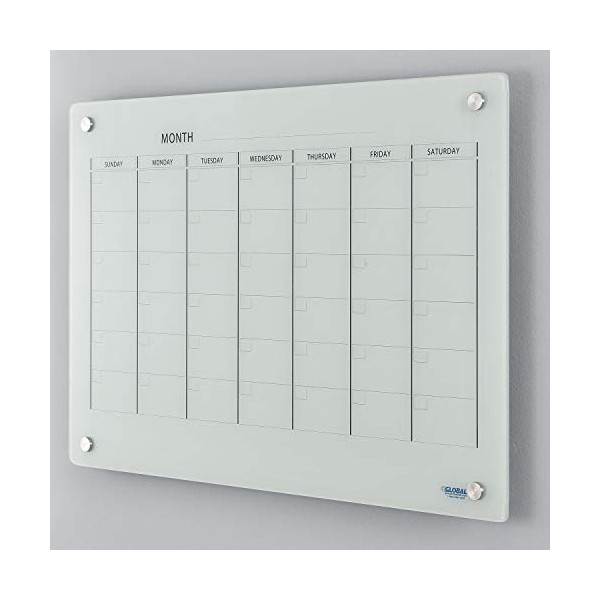 Glass Calendar Whiteboard, Magnetic, White (36"W x 24"H)