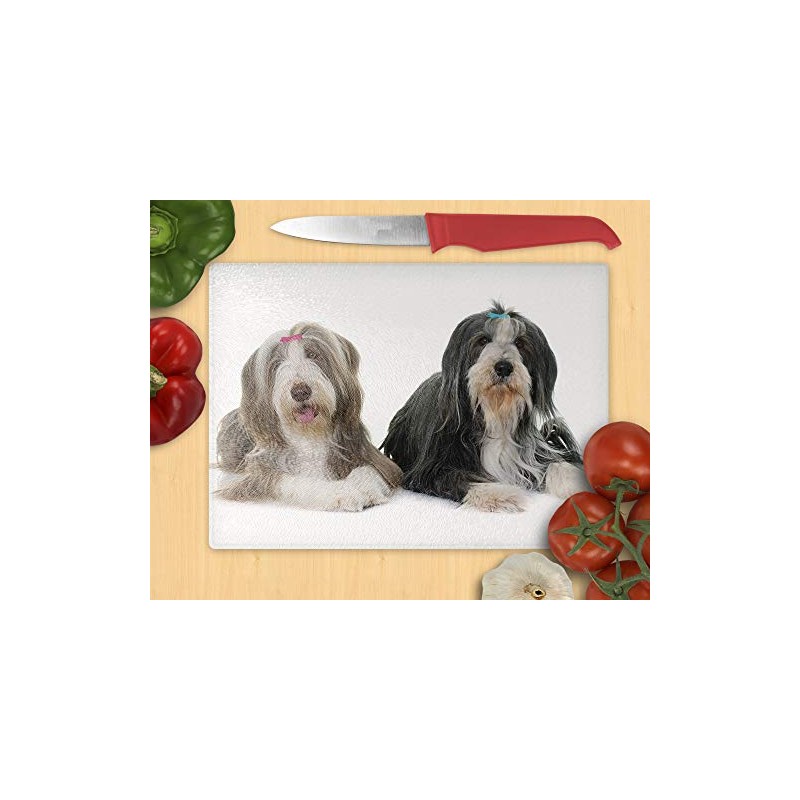 Glass Chopping Board 20 x 28 x 0.4 cm with Bearded Collie Two Animals Lying Down | 01
