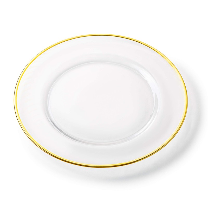Classic Touch Decorium Glass Clear Chargers with Gold Rim- Set of 4- Measures: 13" D