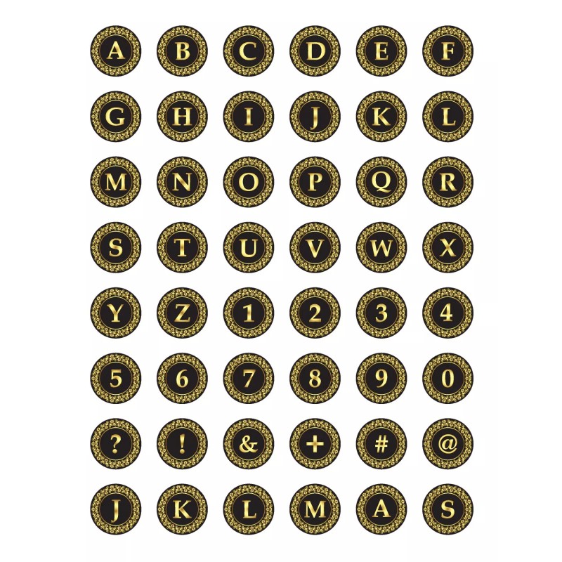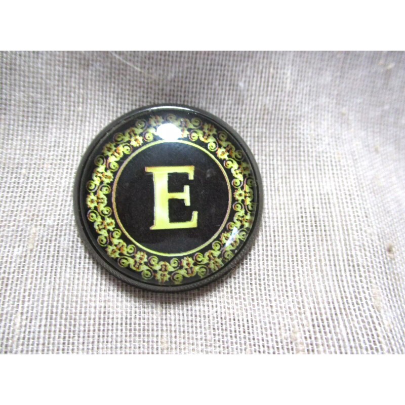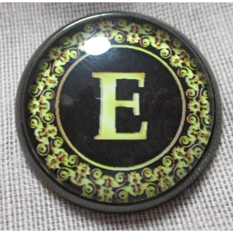NEW GLASS DOME PICTURE BUTTON -- ANY LETTER OR NUMBER SURROUNDED BY GOLD "WREATH." SET IN BLACK BACK WITH BUILT IN SHANK. (ignore the white spot from my lamp). 25mm (1 inch)