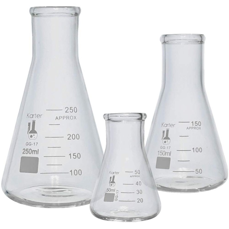 Glass Erlenmeyer Flask Set - 3 Sizes - 50, 150 and 250ml, Karter Scientific