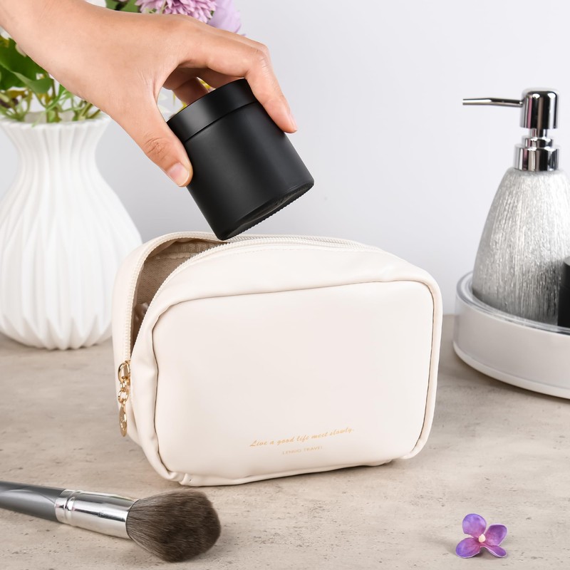 Both sizes fit seamlessly into cosmetic bags, backpacks, luggage, and storage drawers. Stackable design maximizes space efficiency.