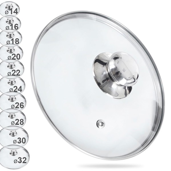 - Universal – a heat-resistant glass lid with stainless steel rim. With a diameter of 32 cm. This lid can be used for all types of pots, casseroles and pans.