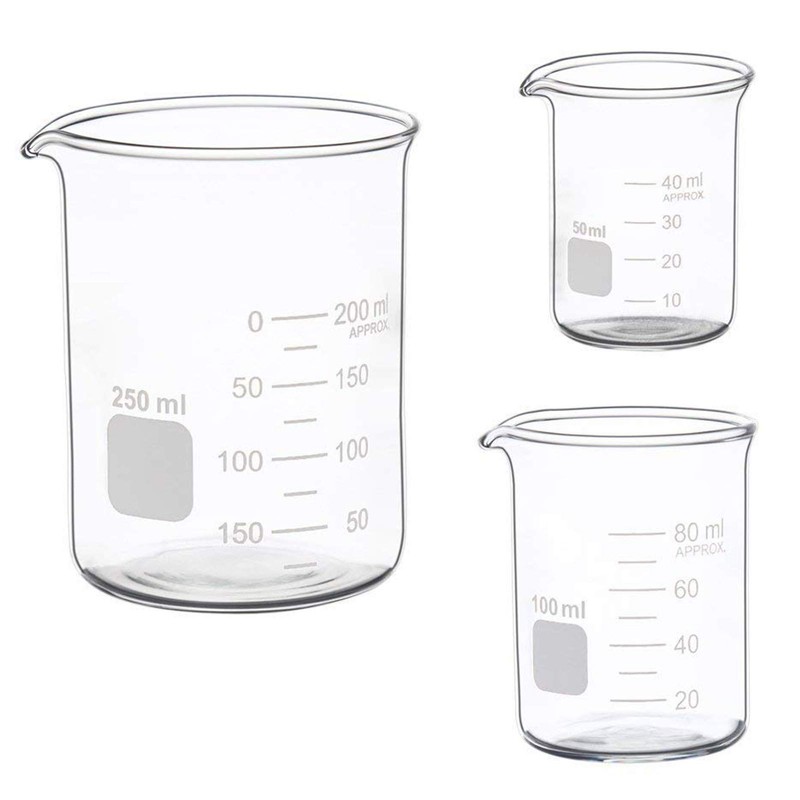 Glass Measuring Low Form Beaker Set 50ml 100ml 250ml Glass Graduated Beaker Set