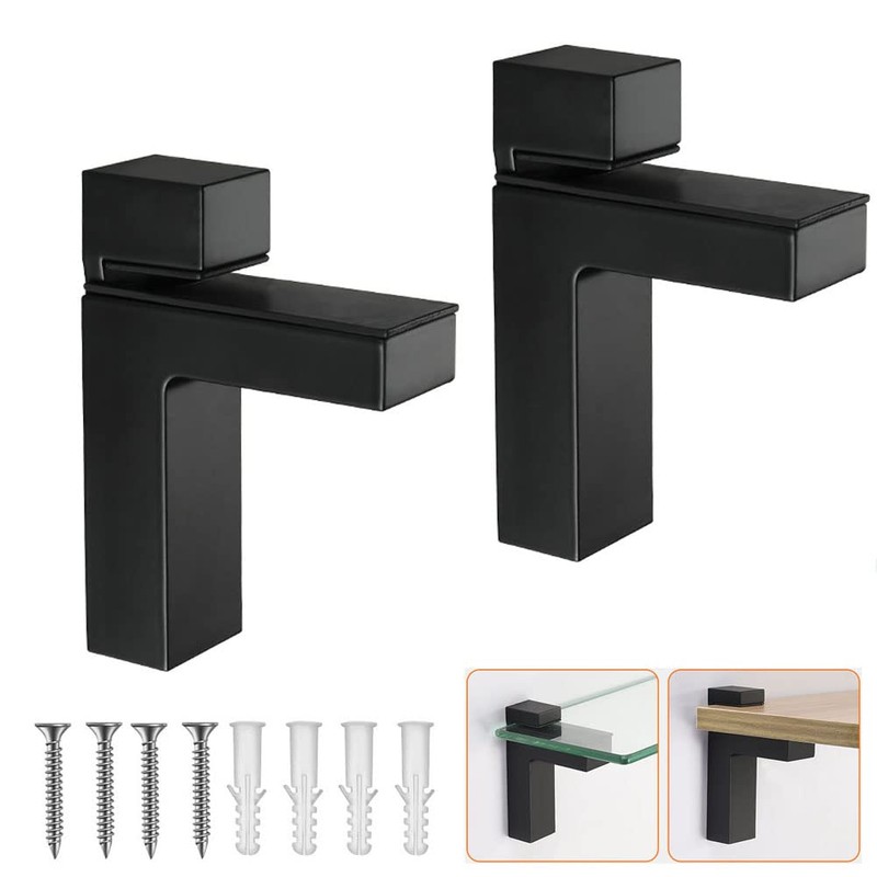 Glass Shelf Brackets , Adjustable 2PCS WoodFloating Shelf Brackets, Mounting Brackets, Glass Shelf Wall Brackets,Black
