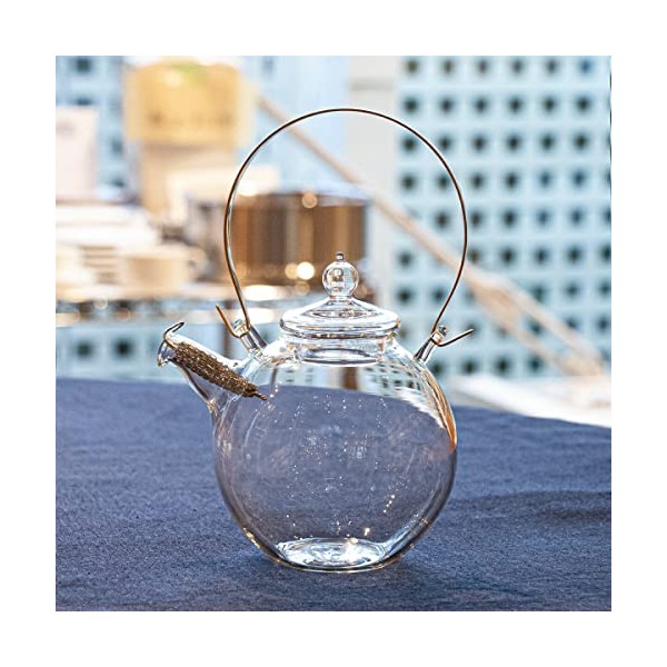 - Material: Body: Heat-resistant glass, Handle: Brass